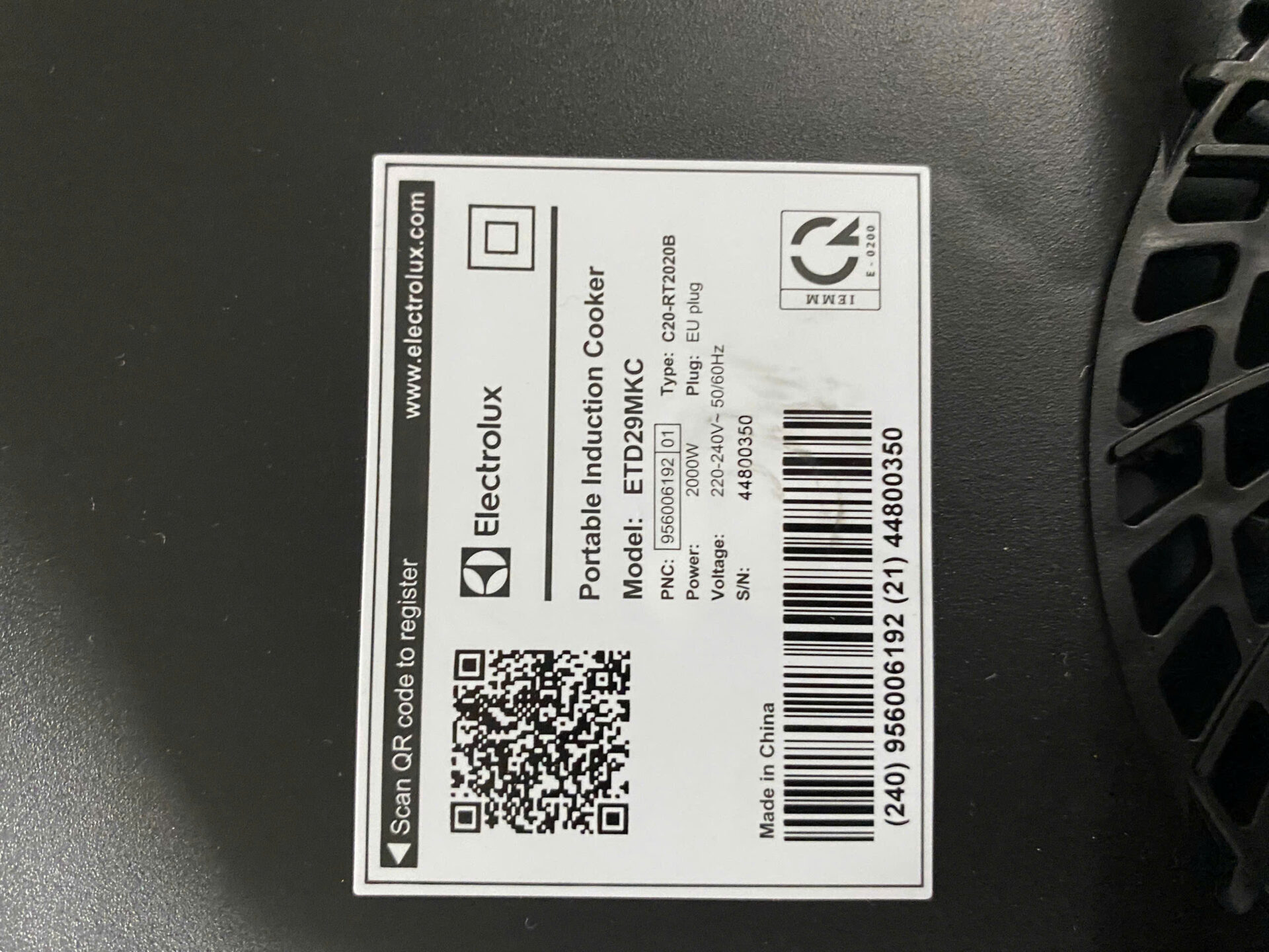 Thương hiệu Electrolux – Thụy Điển, sản xuất tại Trung Quốc.
