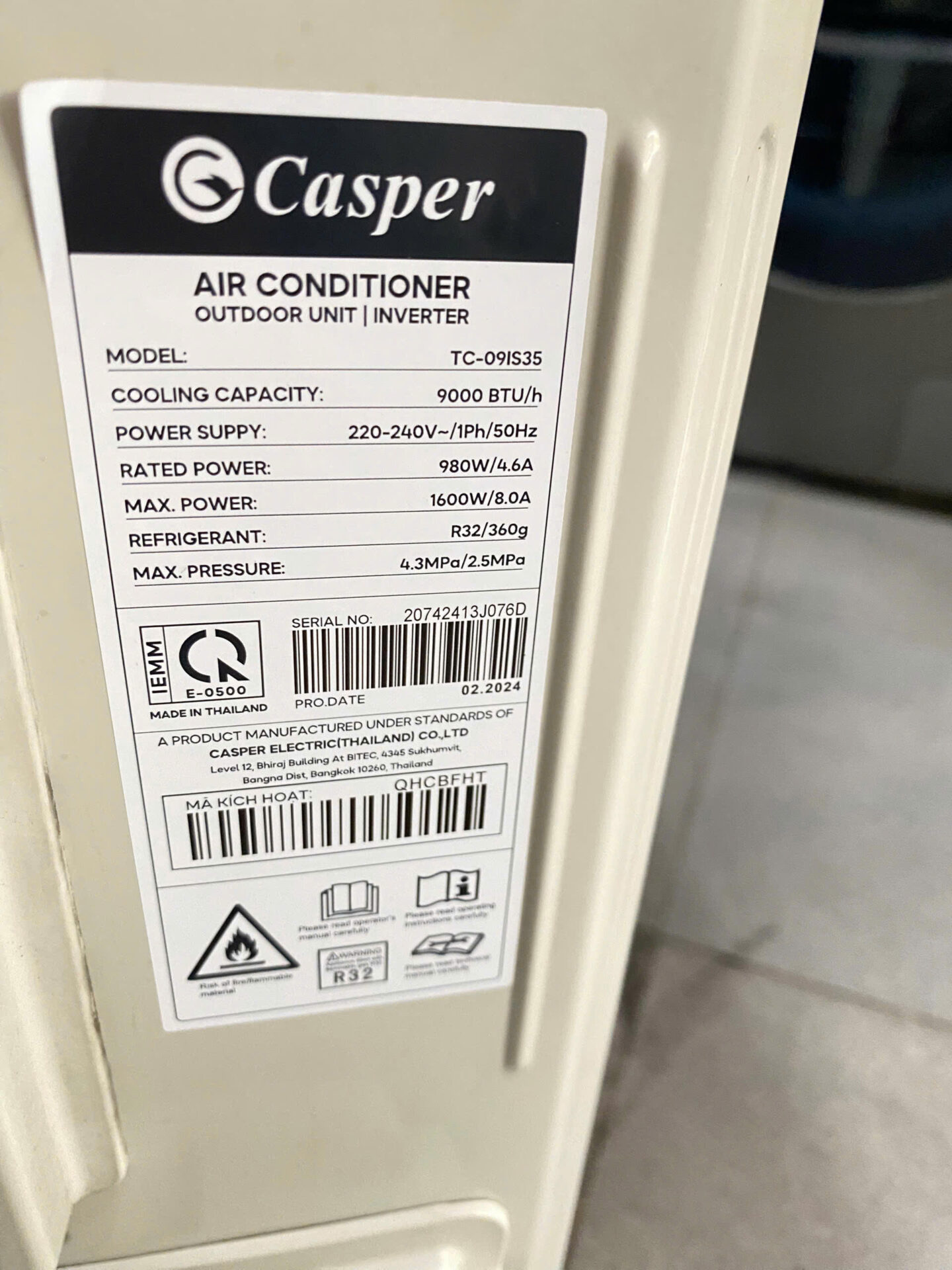 Công suất làm lạnh:1 HP – 9.000 BTU