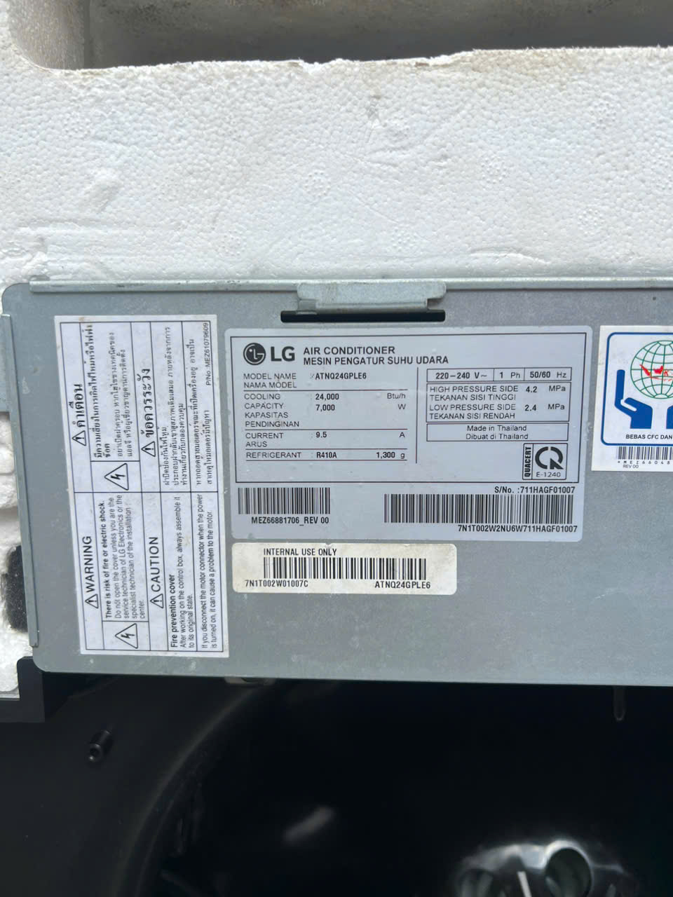 Máy lạnh LG âm Trần 2.5hp inverter ATNQ24GPLE6/ATUQ24GPLE6 – Bh 12thang – Bao Công Ráp