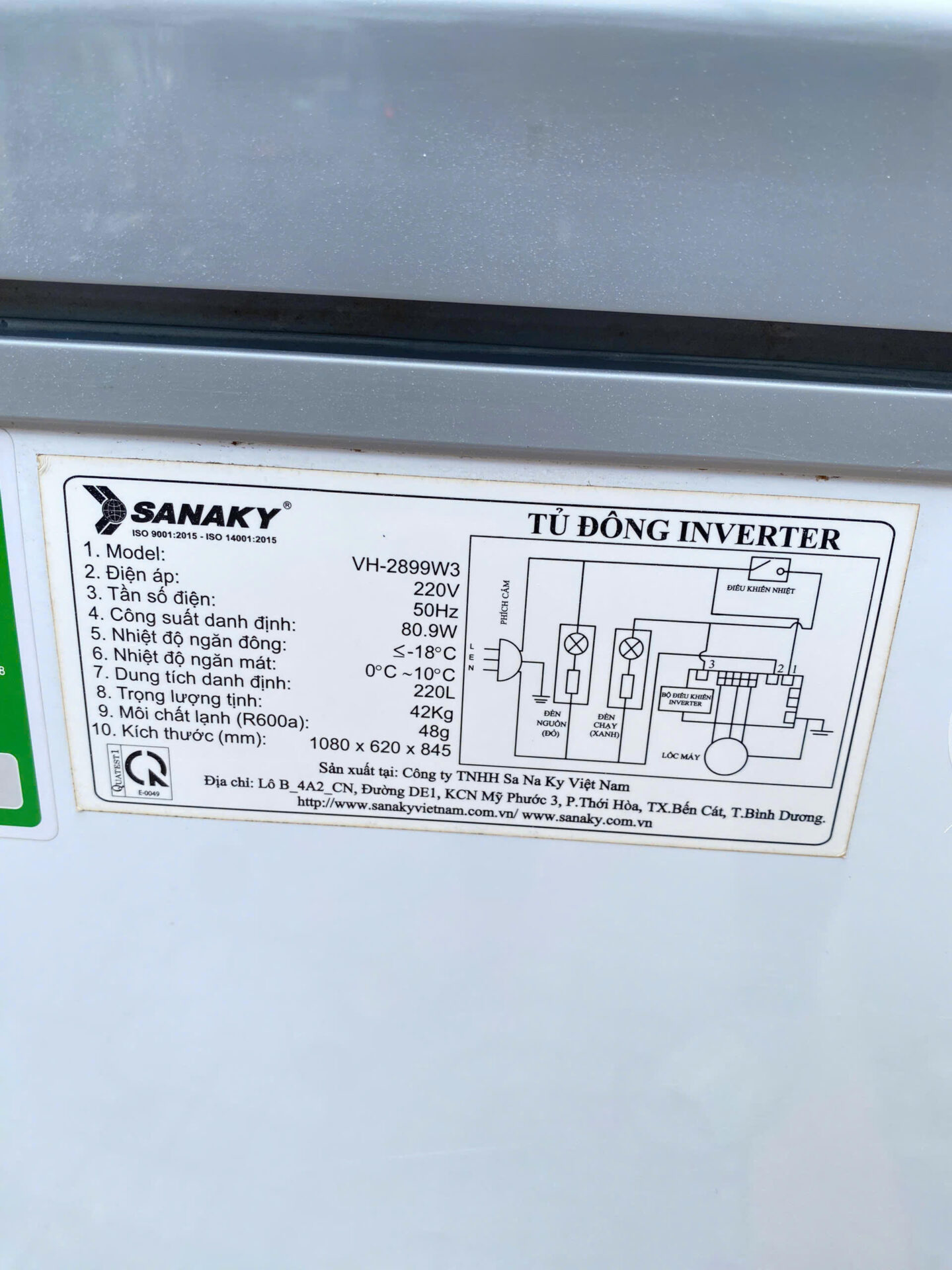 Tủ đông Sanaky Inverter 220 lít VH-2899W3 nhẹ điện