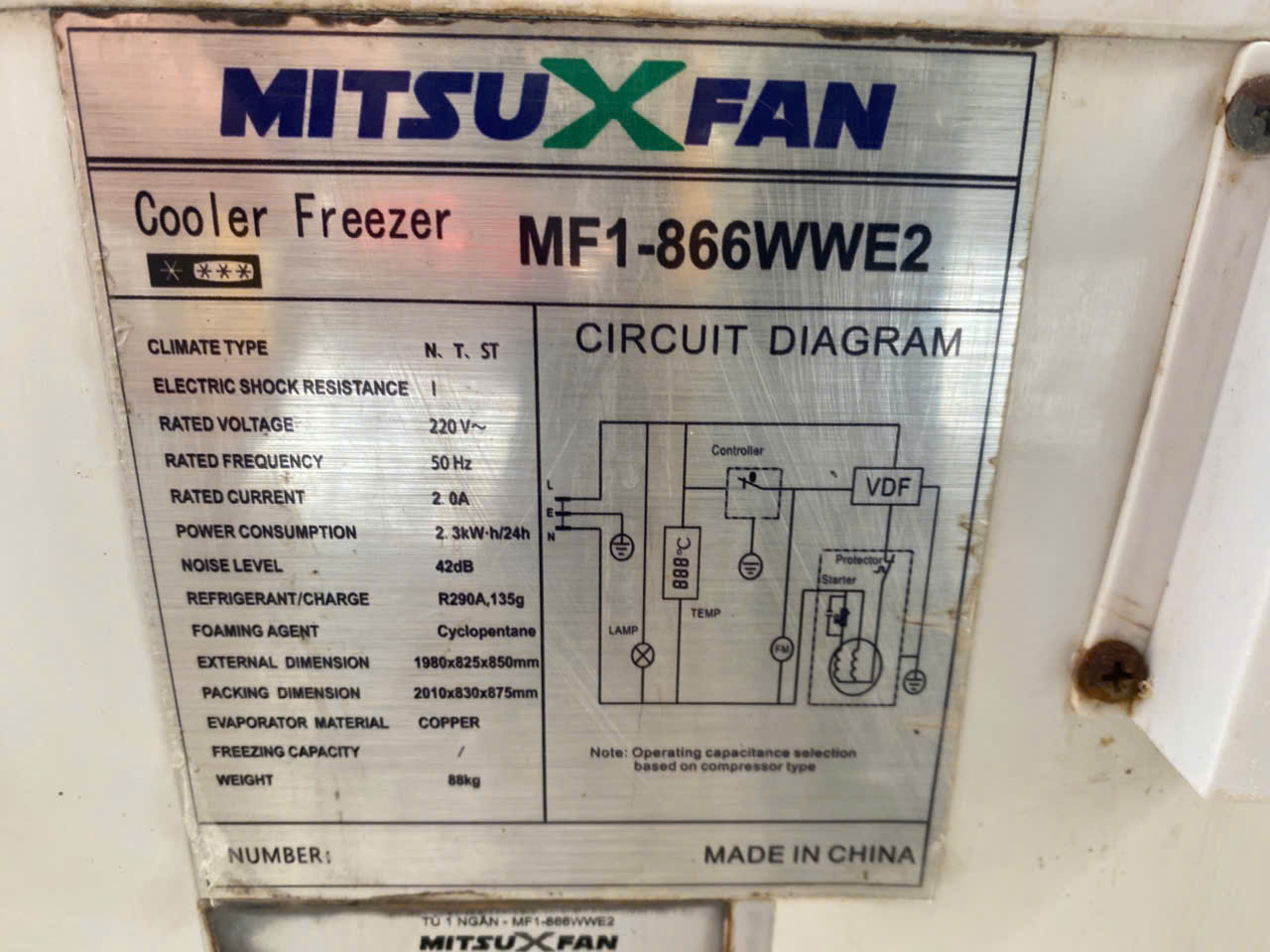 Tủ đông suốt 800 Lit Mitsuxfan Mf1-866wwe2