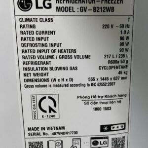 Dung tích 217 lít phù hợp với gia đình từ 2 – 3 thành viên.